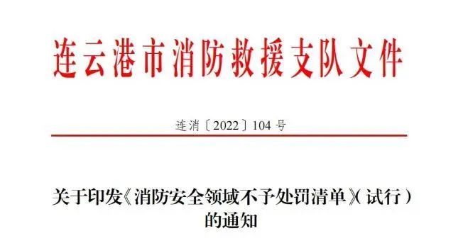 近日,江苏省连云港市消防救援支队出台印发了《消防安全领域不予处罚清单》(以下简称《清单》),明确自9月1日起,对擅自挪用消防设施器材,占用堵塞疏散通道,埋压、圈占、遮挡消火栓等10类消防领域轻微违法行为,推行不予处罚的包容审慎监管机制,让市场主体真正感受到“有温度的执法”。