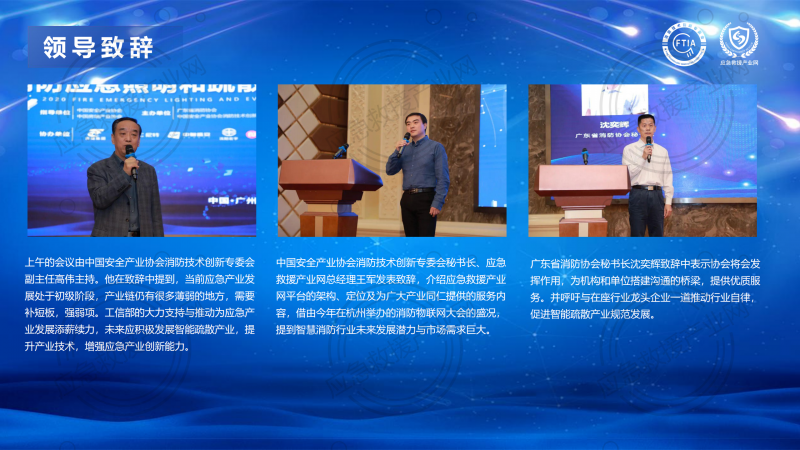 11月27日上午,由中国安全产业协会、中国房地产业协会指导,广东省消防协会、中国安全产业协会消防技术创新专委会主办,中国房地产采购平台(优采)支持,应急救援产业网承办,由营口天成、尼特西普、中智盛安、沈阳宏宇、广东拿斯特、左向照明协办,深圳泛海三江、广州六瑞提供晚宴支持的“发展智能疏散产业 携手共筑安全未来”——2020年消防应急照明和疏散指示系统专项研讨会在广州南洋长胜酒店隆重召开。并特邀升龙投资集团、时代中国、嘉福地产、阳光城、鸿升集团、珠江投资、天誉地产、雅居乐、碧桂园、富力地产、广州庞大投资、光大集团等房企工程采购代表参加本次研讨会,与各行业权威专家、消防企业代表一同探讨消防应急照明和疏散指示系统的产品实际需求、智能疏散产业未来发展方向,共同推动新时代下智慧消防行业的产品与技术创新, 并与智能疏散相关企业联合倡议推进行业自律,促进智能疏散行业健康有序发展。